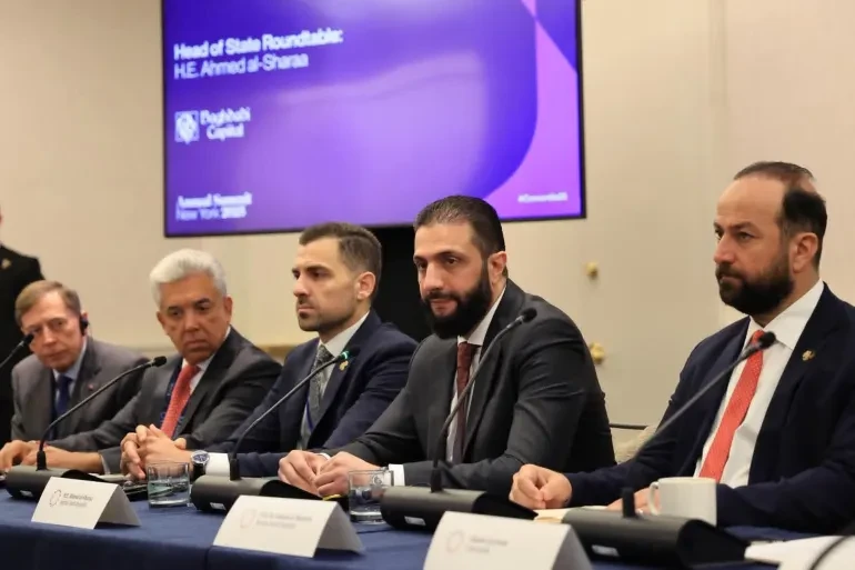 كشفت الجزيرة نت أن الرئيس السوري أحمد الشرع عقد لقاءً في نيويورك مع ممثلي نحو 40 شركة أميركية وعالمية كبرى، وذلك على هامش اجتماعات الجمعية العامة للأمم المتحدة، في خطوة وُصفت بأنها غير مسبوقة بعد رفع العقوبات الأميركية والدولية المفروضة على دمشق.