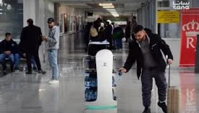روبوت ذكي يقدّم المياه والتمور للمسافرين في مطار دمشق الدولي